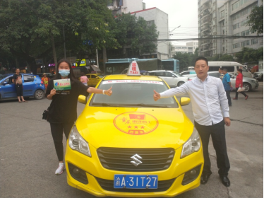 于是,胡師傅連忙將出租車穩(wěn)穩(wěn)第停放在這位女青年身旁,熱情招呼女青年乘坐上自己的出租車。
