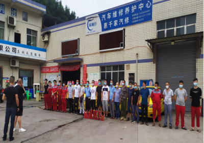 圖一 安全員詳細(xì)講解車輛火災(zāi)處置程序 演練開始前,由公司技安部負(fù)責(zé)人向現(xiàn)場人員詳細(xì)講解了夏季汽車養(yǎng)護(hù)注意事項(xiàng)、車輛發(fā)生自燃后的預(yù)防措施、車輛火災(zāi)處置程序、滅火器的正確使用方法、滅火過程中的注意事項(xiàng)等內(nèi)容。