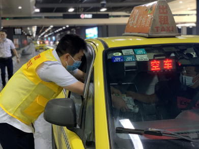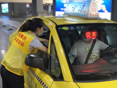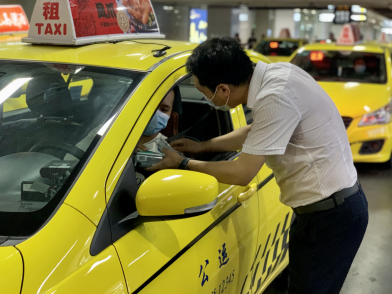 公運出租團支委為駕駛員送上防暑防疫用品并叮囑駕駛員帶好口罩 (文/圖 公運) |