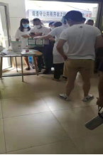 圖為疫情防控現(xiàn)場(chǎng)為駕駛員發(fā)放防疫物資、消毒