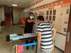 圖為疫情防控現(xiàn)場(chǎng)為駕駛員測(cè)量體溫、發(fā)放防疫物資