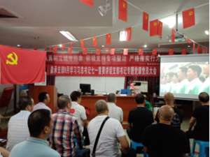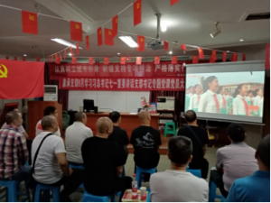 圖為黨員大會(huì)上大家正在認(rèn)真觀(guān)看慶祝中國(guó)共產(chǎn)黨成立100周年歌曲視頻
