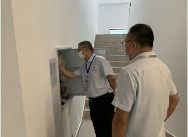 尹經(jīng)理正在仔細(xì)查看“綜合服務(wù)區(qū)”消防設(shè)備