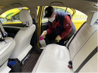 “公運出租”郭明義支隊“雷鋒的士”隊隊員楊雄正在消殺作業(yè)