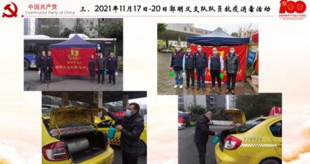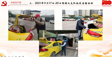 第三,會(huì)議通報(bào)講評(píng)了本企業(yè)郭明義支部雷鋒的士隊(duì)員參加11月份南岸新田灣加氣站、渝北區(qū)龍壩加氣站連續(xù)四天集中消毒情況。參與消毒同志們嚴(yán)格按照上級(jí)部署要求,落實(shí)了人員、時(shí)間、地點(diǎn)及效果,參與隊(duì)員們克服新冠病毒對(duì)行業(yè)的沖擊,合理安排自己的工作時(shí)間,按時(shí)到達(dá)任務(wù)區(qū)域;同時(shí),隊(duì)員們還克服雨天等不良天候?qū)κ彝庀咀鳂I(yè)的影響,持續(xù)奮戰(zhàn)在消毒的第一線,為主城巡游出租汽車實(shí)施免費(fèi)消毒服務(wù),圓滿完成了上級(jí)賦予的任務(wù)。