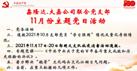 以昂揚(yáng)的姿態(tài),貫徹好十九屆六中全會(huì)精神 ——鑫隆達(dá)大嘉公司聯(lián)合黨支部