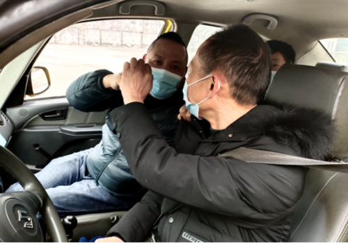 面對醉酒乘客,駕駛員正確處置車輛、打不還手、罵不還口、耐心勸導、請求救援、保留證據(jù),合法有序的化解了一場矛盾糾紛。 演練提醒廣大駕駛員,特別是在夜晚遇到醉酒者或者精神病患者乘車的,可以根據(jù)情況選擇拒載。醉酒情況嚴重的,可以報警處理。同時要臨危不懼,處變不驚;把握時機,理智處理。 模擬場景二乘客持刀搶劫處置: 假定兩名社會青年搭乘出租車,在行經(jīng)郊區(qū)路段時,兩名乘客拿出兇器,恐嚇駕駛員交出值錢財物。