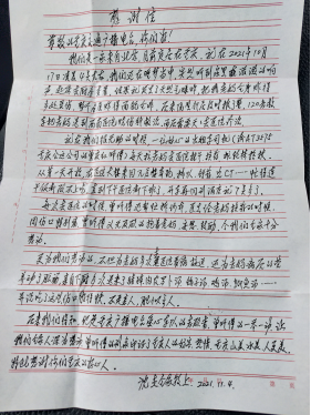老人親手寫下感謝信向曾慶江表示感謝 |