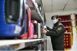 失物招領(lǐng)中心工作人員在清點失物
