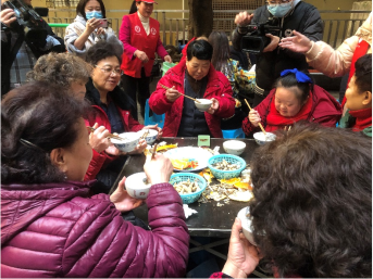 一到服務(wù)站,“雷鋒的士”隊(duì)員們就馬不停蹄地分工協(xié)作,有的陪同老人拉家常,有的和老人一起包湯圓,有的負(fù)責(zé)為老人送上節(jié)日禮品,現(xiàn)場(chǎng)氣氛熱烈。