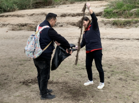 牛欄壩俗稱“小馬爾代夫”,江景沙灘,風(fēng)光宜人。元宵節(jié)剛過,天氣漸暖,游客眾多。但一些竹簽、煙頭、塑料袋、果皮紙屑等垃圾隨處亂扔的情況,造成了牛欄壩岸邊灘涂的環(huán)境污染。 公益活動(dòng)當(dāng)天,較大的江風(fēng)阻擋不了志愿者的熱情。美天交通30余名志愿者及家屬激情飽滿、一路歡聲笑語到達(dá)牛欄壩,身穿統(tǒng)一服裝紛紛投入到江邊垃圾清理的活動(dòng)中來。他們手中都拿著塑料袋,分兩個(gè)組沿著牛欄壩岸邊將散落在江邊灘涂的礦泉水瓶、果皮、紙屑及煙頭等各種垃圾一一清理撿起。其中有些垃圾深陷在了淤泥里,竟需要多人合力才能把垃圾清理出來。在清理垃圾的過程中,大家談天說地,交流感情,在用實(shí)際行動(dòng)踐行環(huán)境意識(shí)的同時(shí),也讓自己的心情放了個(gè)假。于此同時(shí),牛欄壩作為網(wǎng)紅打卡地,眾多正在江邊游玩的市民和小朋友也紛紛加入了公益活動(dòng)中來,和美天志愿者一起撿拾垃圾,投放分類清理,大家臉上洋溢著的笑容感染了身邊很多人。