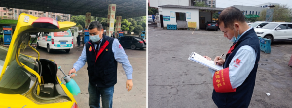 圖為在中石化人和加氣站消毒點(diǎn)合影留念