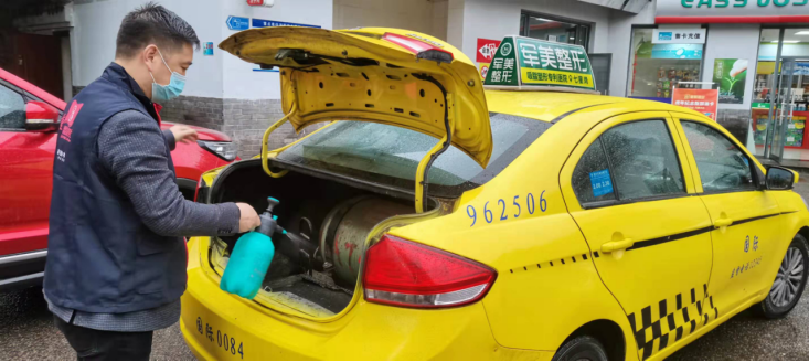發(fā)表時(shí)間:2022-03-31 10:51作者:張維婭來源:嘉陽 為了認(rèn)真落實(shí)黨中央國務(wù)院、交通運(yùn)輸部、市委市政府關(guān)于《交通運(yùn)輸疫情防控工作》會議精神,疫情面前無小事,車輛消毒很重要。3月26日早上8點(diǎn)10分,重慶嘉陽出租客運(yùn)有限責(zé)任公司黨支部由書記 “雷鋒的士”志愿服務(wù)隊(duì)指導(dǎo)員王慶帶頭,帶領(lǐng)支部黨員和部分“雷鋒的士”志愿服務(wù)隊(duì)隊(duì)員共十名同志,身穿雷鋒的士馬甲,佩戴口罩?jǐn)y帶好消毒防疫用品,從單位集體出發(fā)、按黨支部安排分別來到了位于渝北區(qū)中石化人和加氣站、南岸區(qū)新田灣加氣站消毒點(diǎn)出租車加氣的重要集散點(diǎn)各3人。 到達(dá)預(yù)定地點(diǎn)后,6名同志分工合作、各施其責(zé),首先根據(jù)比例調(diào)對好消毒液8點(diǎn)50分便投入到為進(jìn)站的出租車全天候的消毒工作,由一名同志引導(dǎo)線路指揮駕駛員開門配合叮囑清消后的注意事項(xiàng)作好消毒車輛登記,二名黨員打消毒液,并再三提醒駕駛員加強(qiáng)安全防護(hù)的要點(diǎn)。上午十點(diǎn)左右我司支部書記王慶和“雷鋒的士”志愿服務(wù)大隊(duì)大隊(duì)長何濤也分別來到二個消毒點(diǎn)一起參加消毒工作。中午時(shí)分大家不辭辛勞,分批去附近的餐館就餐。才放下碗筷又投入到了消毒工作中,就這樣從早上8點(diǎn)40一直到下午4點(diǎn),持續(xù)工作了7個多小時(shí),全天相繼為700多臺出租車進(jìn)行了消毒處理。
