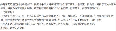 撿到物品不歸還之相關(guān)法律條文 |