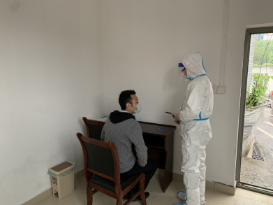 演習(xí)人員將發(fā)熱人員帶入留觀室并多次對(duì)其體溫進(jìn)行復(fù)測(cè)