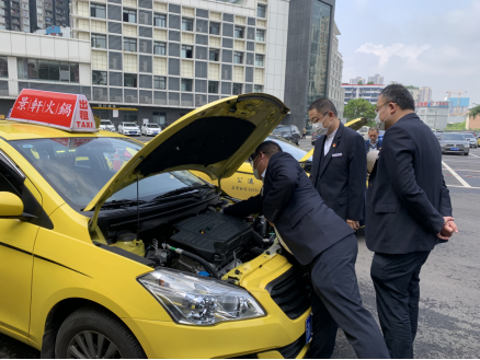 分公司領(lǐng)導(dǎo)班子認(rèn)真查看出租車燃?xì)庀到y(tǒng)情況