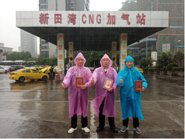 發(fā)表時間:2022-05-06 10:54作者:羅國華來源:泉承 疫情就是命令,防控就是責(zé)任。按照重慶市“雷鋒的士”總隊關(guān)于疫情防控車輛消毒工作的安排,重慶泉承大隊的雷鋒隊員同志們積極報名參加了4月30日在渝北區(qū)中石化人和加氣站和南岸區(qū)新田灣加氣站內(nèi),開展對出租汽車進行疫情防控消毒活動,在大家的共同努力下取得了疫情防控車輛消毒的良好成績。 這一天是2022年“五一節(jié)”小長假中的第一天,6名優(yōu)秀雷鋒隊員同志們紛紛爭先恐后到達中石化人和加氣站點和南坪新田灣加氣站點現(xiàn)場,開始投入到消毒活動的一切準備工作,做好搭建防雨篷、安放好座椅、配置好84消毒液、著好雷鋒的士隊員服裝和輕便雨衣、佩戴好黨徽、疫情防控隊員袖標等消毒活動的準備工作。 在這天的車輛消毒活動中,天下著小到中雨,兩個站點的6名優(yōu)秀雷鋒隊員,積極主動、相互配合,協(xié)同一致,在風(fēng)雨中對陸陸續(xù)續(xù)進入站內(nèi)的出租汽車進行車輛號牌、公司名稱及數(shù)量的登記,指揮車輛有序進入加氣站位,一邊開始進行CNG加氣、一邊開始對車輛進行消毒,待車輛加氣完成后,又指揮車輛駛出加氣站,緊接著又指揮下一輛出租汽車進入加氣點位加氣、消毒。就這樣出租汽車一輛接一輛循環(huán)地進行著這個程序,緊張而有序的消毒活動,使得隊員們基本沒有時間座下休息一會兒,喝上一口水,連午飯也是大家分別輪換著,為抓緊時間而三口兩口就下肚,連忙又去換上另一名隊員去就餐,就這樣使得車輛消毒活動接連不斷而開展著,直到活動順利結(jié)束。 在消毒活動中,6名優(yōu)秀雷鋒隊員同志們,以泉承大隊的名義,全然不顧個人得失,想到和展現(xiàn)的就是在五一勞動節(jié)中:“我勞動我光榮、我勞動我幸福、我勞動我快樂”的勞動精神,一個心眼就是積極熱情地開展好這次總隊分配給大家的疫情防控艱辛而光榮的任務(wù),充分展現(xiàn)出泉承大隊優(yōu)秀雷鋒的士的思想素質(zhì)和優(yōu)秀行為! 在這天雨中的車輛消毒活動中,在這天慶祝“五一勞動節(jié)”的喜慶氛圍中,還特別展現(xiàn)出了泉承優(yōu)秀雷鋒隊員的正能量思想素質(zhì)和行為。在這一天一大早,優(yōu)秀雷鋒隊員胡治強同志,主動放棄在家休息的良好時機,駕駛私家小車前往江北區(qū)五里坪處,將參加當天消毒活動的田宏祿同志接送到人和加氣站消毒點,還自費為隊員們買來飲用水分發(fā)給隊員們;在泉承大隊全隊中最為年青的優(yōu)秀雷鋒隊員羅強同志,不光自己積極踴躍參加活動,還將自己上初中放假在家的大兒子一同帶來車輛消毒現(xiàn)場,在父親的熱情帶領(lǐng)下,積極參加車輛消毒,并利用五一勞動節(jié)時機,充分體驗勞動所需的辛勤、勞動付出的汗水、勞動獲得的快樂、勞動創(chuàng)造的幸福感受;優(yōu)秀雷鋒隊員趙加坤同志,在凌晨4點鐘就開始駕駛車輛進行巡游客運服務(wù)工作,在消毒活動時,就將出租汽車停放在消毒活動現(xiàn)場,積極參加車輛消毒活動等感人事跡。 通過大家的共同努力,在渝北區(qū)中石化人和加氣站出租汽車消毒點上盧忠軍、田宏祿、羅強3名優(yōu)秀雷鋒隊員,這天共計對411輛出租汽車進行了疫情防控消毒;參加新田灣加氣站出租汽車消毒活動的夏遠均、邱小波、趙加坤3名優(yōu)秀雷鋒隊員,這天共計對472輛出租汽車進行了疫情防控消毒,6名隊員共計對883輛出租汽車進行了疫情防控消毒,取得了優(yōu)良成績,并獲得了泉承黨支部為大家頒發(fā)的“疫情防控最美勞動者”榮譽證書,使大家在慶祝“五一勞動節(jié)”氛圍中,獲得了一次非常有意義的勞動最光榮、勞動最幸福、勞動最快樂的體驗和獲得感!