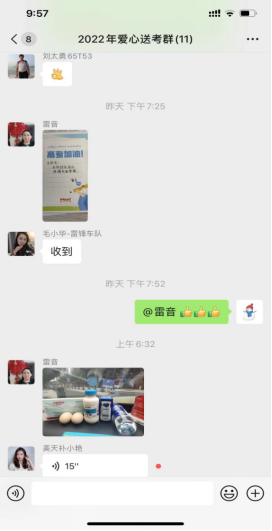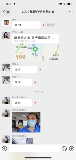 發(fā)表時間:2022-06-07 14:59作者:平曉霞來源:東贏 一年一度的愛心送考活動于6月7日正式拉開帷幕,為順利圓滿地完成愛心送考活動,重慶美天東贏-恒康“雷鋒的士”全體隊員積極響應總隊號召,義不容辭接受了6月7日至9日為期三天送考任務,公司黨支部高度重視,組織安排了4名黨員和2名入黨積極分子同志參與此次接送考生任務,共接送考生及家長12名。 每年高考季,雷鋒的士從不缺席,如約而至。并在雷鋒的士隊長的指揮下從防疫、考試安全、考生服務等方面多措并舉,保證做到安全送考。 為保證安全、準點、不誤考、營造寬松、舒適的送考環(huán)境,更好完成愛心送考任務。雷鋒的士們在接送細節(jié)、清潔車容車貌、檢查車況上花費了不少心思。他們先提前一天與考生家長取得聯(lián)系,并先去考生住址-考點進行實地了解線路,排開堵點、精準時間,確保送考任務萬無一失。 6月7日愛心送考當天,“雷鋒的士”隊員們?nèi)硇耐度耄瑸榭忌佑凸膭艃海慕忝∪A、雷音,的哥徐周等人特意為接送的考生準備了營養(yǎng)早餐,牛奶、雞蛋,親手繪制了愛心卡“博高考夢想成真,祝高考金榜題名”、“自信創(chuàng)造奇跡,拼搏成就夢想”送給考生,祝福孩子們考出好成績。為避免擁堵,送考的雷鋒的士提前到達接送地點,耐心等待考生,接到考生后,溫馨提醒學生帶好口罩、身份證、準考證、已經(jīng)相關考試文具,安全、準時的將考生送到考試現(xiàn)場。