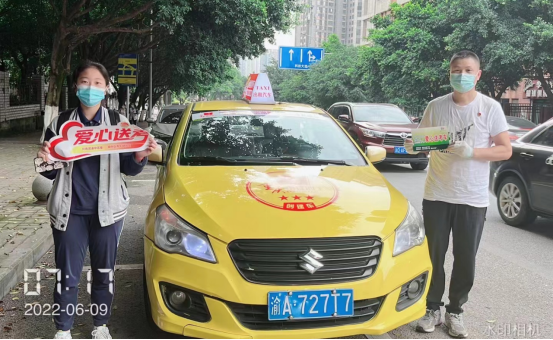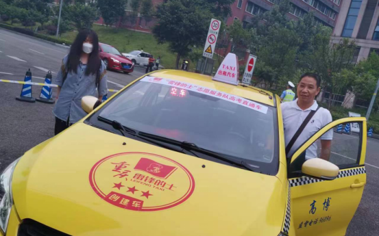 圖為高博雷鋒的士駕駛員張開義與考生合影(二) 像武師傅和張師傅一樣參與愛心送考的雷鋒的士駕駛員還有很多很多,他們主動放棄日常營運,為考生提供免費送考。比如:雷鋒的士駕駛員李天明,6月8日一早就接到一位從巴蜀中學(xué)前往求精中學(xué)參加高考的學(xué)生和家長;雷鋒的士駕駛員胡繼才,6月8日早上7點左右,送一位考生從北環(huán)前往兩江育才新校區(qū); 6月9日,雷鋒的士駕駛員劉金鵬送考生從模范村到一中;6月9日,雷鋒的士駕駛員周靈送考生從西信洲際花園到求精中學(xué);6月10日,雷鋒的士駕駛員簡天文送考生從鳳天路沃爾瑪?shù)酱髮W(xué)城一中等等等等。從第一天高考開始到今天,雷鋒的士隊員們愛心送考的信息頻頻傳來。師傅們在自己平凡的崗位上,不忘初心,用實際行動,踐行雷鋒精神,不斷給考生們傳遞溫暖與能量。
