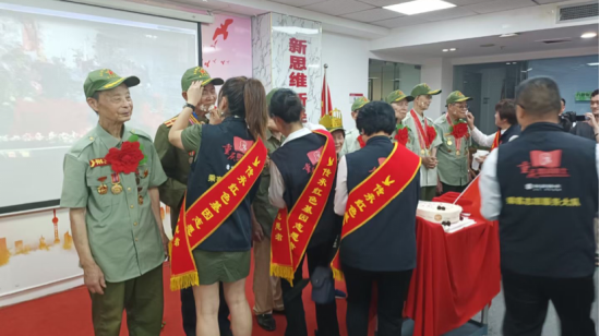 “雷鋒的士”乘客志愿服務(wù)隊(duì)隊(duì)員與老兵們親切合影