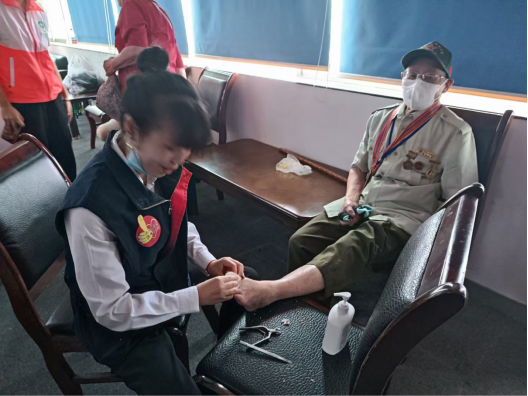 重慶“雷鋒的士”乘客志愿服務(wù)隊(duì)隊(duì)員為老兵修腳