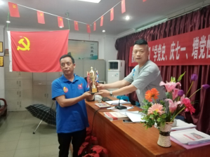 新任支部書記文瑜同志在會(huì)上向獲得“全國五好家庭”榮譽(yù)稱號(hào)的張勇同志頒發(fā)“奉獻(xiàn)爭光獎(jiǎng)”獎(jiǎng)杯。