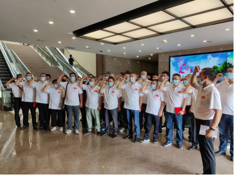 發(fā)表時間:2022-07-01 14:52作者:馮祥模來源:鑫隆達(dá) 6月29日,重慶鑫隆達(dá)大嘉公司聯(lián)合黨支部在中國共產(chǎn)黨101周年華誕之際,公司聯(lián)合支部書記馮祥模帶領(lǐng)50余名一線黨員、入黨積極分子,統(tǒng)一著建黨100周年白色文化T恤衫、佩戴黨徽,到渝中區(qū)紅巖村51號“紅巖革命紀(jì)念館”廣場,開展“銘記黨的光輝歷史、增強(qiáng)黨性意識,喜迎黨的二十大勝利召開”慶七一主題黨日活動。