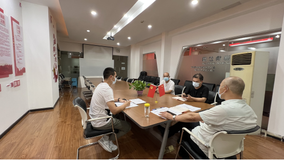 圖為活動籌備組召開會議落實責任明確分工 6月30日下午,所有人員到位,根據(jù)安排各自出發(fā),前往鐵山坪國防知識教育中心。全體人員在基地演習廣場集結完畢,黨支部聶書記首先做簡短講話,再次明確了本次參觀和學習活動的重要性,并給大家提出號召,期望本次活動,所有成員認真學習領會,積極貫徹落實,以實際行動獻禮黨建101周年。