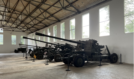 圖為國防知識教育中心展廳成列的部分兵工武器