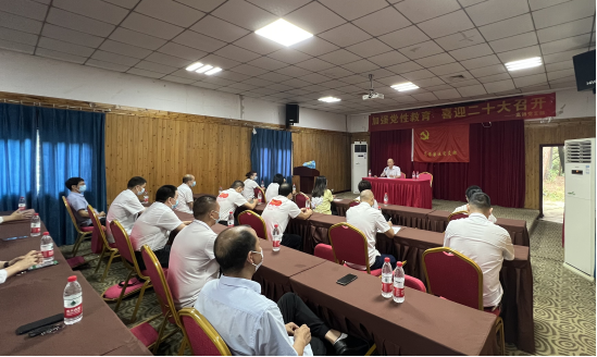 圖為黨員們在國防知識教育中心大門處合影留念 7月1日,當清晨第一縷陽光穿過樹梢灑落窗畔,籌備組的所有成員前往會場開始布場。會前十分鐘,全體黨員來到會場,依序簽到入座。 九點三十分,本次黨建學習會議正式拉開帷幕。 會議由黨支部組織委員鄢曉軍主持,會議進入第一項議程,由黨支部聶書記帶領大家學習。學習內容有兩大塊:1、解讀出協(xié)黨委關于重慶市道路運輸事務中心黨委學習會通知;2、學習重慶市第六次黨代會會議精神。聶書記特別提出,中國共產黨重慶市第六次代表大會,是在黨的二十大即將召開,我市奮進社會主義現(xiàn)代化建設新征程關鍵時期召開的一次重要會議,具有深刻的意義。所有黨員要牢記習總書記的殷殷囑托,踐行初心使命,推動高質發(fā)展,創(chuàng)造高品生活,為書寫重慶全面建設社會主義現(xiàn)代化新篇章而努力奮斗! 圖為高博黨支部聶書記帶領黨員開展黨建學習 會議第二項議程,聶書記向全體黨員發(fā)出號召,并部署近期黨建工作。黨的二十大是我們黨進入全面建設社會主義現(xiàn)代化國家、向第二個百年奮斗目標進軍新征程的重要時刻召開的一次十分重要的代表大會,是黨和國家政治生活中的一件大事。為迎接黨的二十大召開,在疫情穩(wěn)定的情況下,高博黨支部將啟動“三會一課”制度。與會黨員們也紛紛表示堅決服從黨組織的安排,并暢談學習心得。大家表示,將結合工作實際,把習近平總書記殷殷囑托落實到工作中。立足本職,創(chuàng)新發(fā)展,以實際行動迎接黨的二十大順利召開。