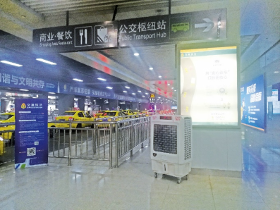 重慶北站北廣場(chǎng)出租車上客點(diǎn)增設(shè)的冷風(fēng)機(jī) |