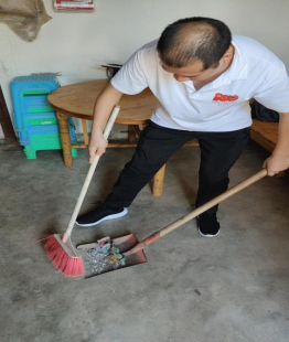我們給老黨員帶去了銀耳、純牛奶、油、收音機、書籍和皮鞋等等,這次慰問老黨員已經(jīng)有10余個年頭了,老黨員看見我們來了,心情十分的激動,像見到了自己的親人一樣,我們進到家里看見里面的物品和地面,有些許的凌亂,我們大家動手展開了打掃工作。