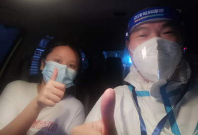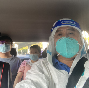 “應(yīng)急運(yùn)力保障突擊隊(duì)”隊(duì)員徐偉接送管控區(qū)域內(nèi)的孕婦前往醫(yī)院就診 |