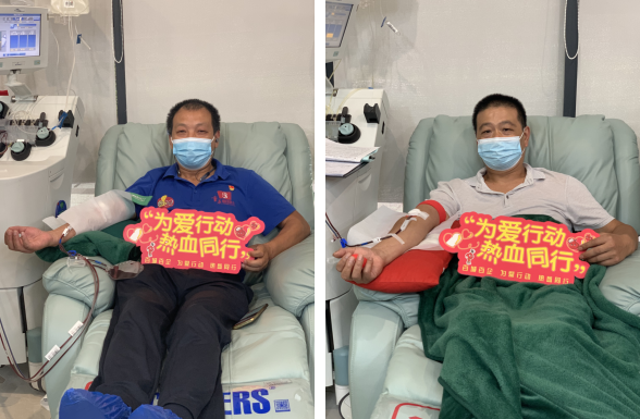 圖為(左起)雷鋒的士陳干和陳朝兵正在獻(xiàn)血中