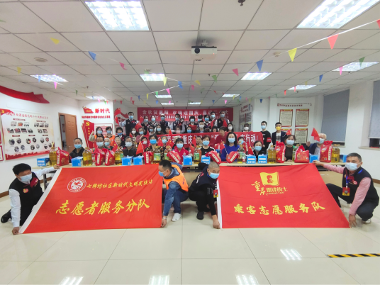 “雷鋒的士”乘客志愿服務(wù)隊(duì)隊(duì)員們?yōu)槔先藗兎职l(fā)物資