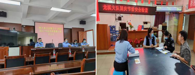 圖為龍溪大隊(duì)在向各公司傳達(dá)精神 圖為龍溪大隊(duì)國(guó)慶節(jié)前對(duì)公司安全檢查 |