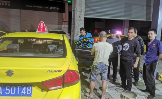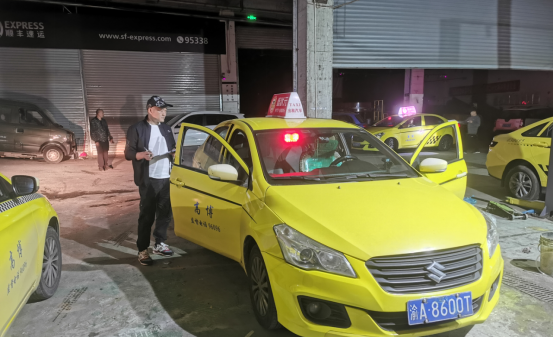 圖為高博客運黨支部聶書記對車容車貌進行仔細檢查