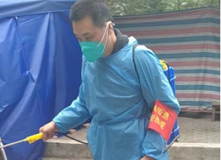 鄧志剛堅守在蓬萊社區(qū)水木香山小區(qū)。檢查小區(qū)圍棚和看出入證,小區(qū)消毒,送些封控的物品等。