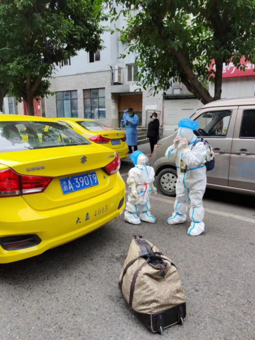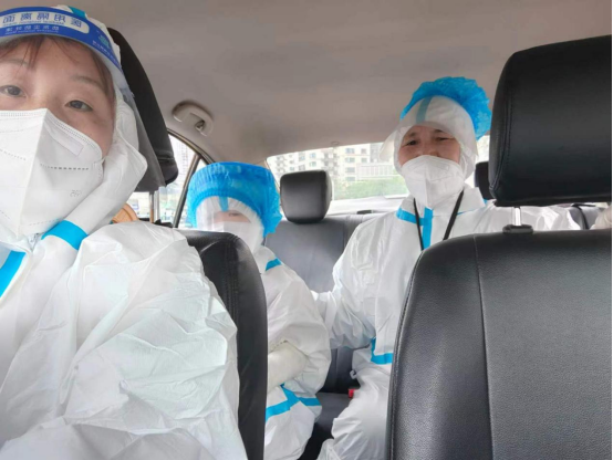 圖一護(hù)送婆孫倆 從11月3日開始,她就和我們一起加入了沙區(qū)抗疫救援活動,10幾天來,她不怕累、不怕苦的精神令我感動。 11月16日12:50分,姜正芳接到磁器口街道需要轉(zhuǎn)運隔離人員的信息,她立即驅(qū)車來到三千城三棟樓下。在漫長的等待中,姜師傅看到一位步履蹣跚的老婆婆和小女孩向她走來,她想,這應(yīng)該就是自己要接的隔離人員63歲的婆婆跟3歲的孫女吧?一老一小隨身攜帶的物品太過零亂,根本拿不動,小區(qū)鄰居在這樣的情況下,也只能望而卻步。雖然存在有可能被感染風(fēng)險,但姜正芳穿有防護(hù)服,她主動幫助婆孫倆拿物品扶他們上車。剛上車,小女孩就用稚嫩的聲音叫:“阿姨,你知道嗎?我要去當(dāng)醫(yī)生了喲!我好開心喲!”正芳當(dāng)時思緒萬千,那一刻特別的心酸……