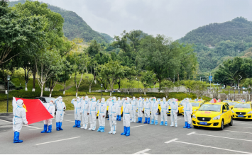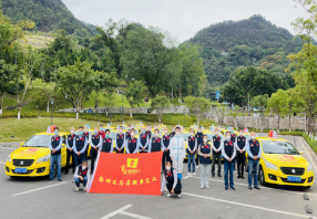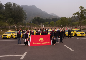 圖為全體雷鋒的士隊(duì)員在一起曬出鮮紅的旗幟