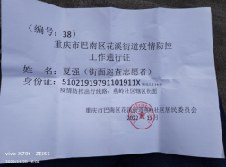 圖為巴南區(qū)花溪燕嶺社區(qū)給夏強(qiáng)出具的工作通行證 |
