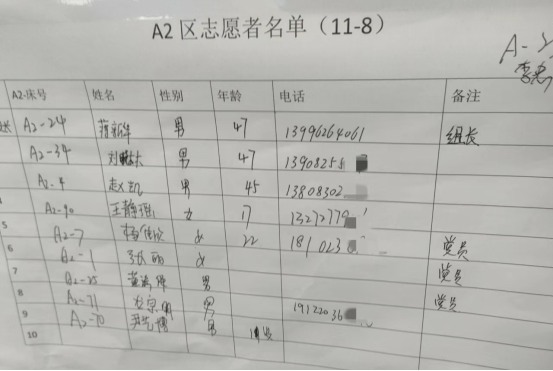 圖為南彭方艙醫(yī)院A2區(qū)志愿者名單