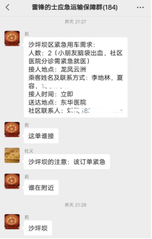 “雷鋒的士”公運(yùn)支隊(duì)隊(duì)員李飛在應(yīng)急運(yùn)輸保障群里主動承接任務(wù)