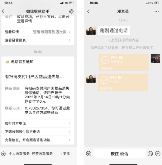 圖為駕駛員拾到手機后的通話記錄及歸還手機的現(xiàn)場照片
