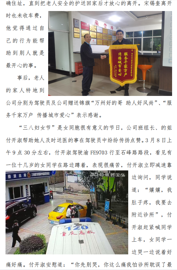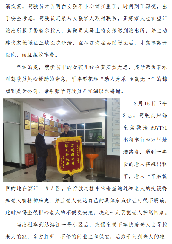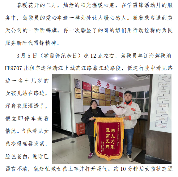 平凡獻愛心 錦旗送的哥 ——記美天駕駛員風(fēng)采踐行雷鋒精神