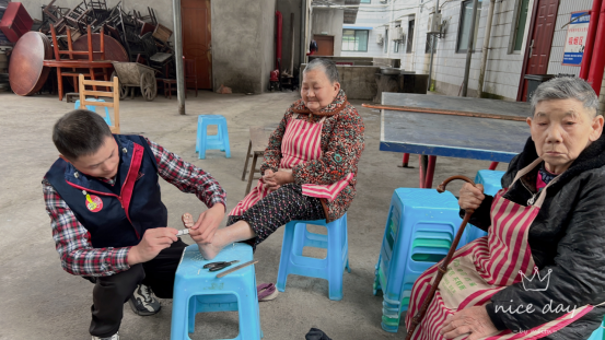 圖為雷鋒的士隊員為老人們剪指甲 中午時分,大家高興的圍桌而坐。看著一只只飽滿如元寶般的餃子端上餐桌,老人們的眼中盛滿笑意。我們也祈愿,每一位老人在今后的日子里都平安快樂,吉祥健康!