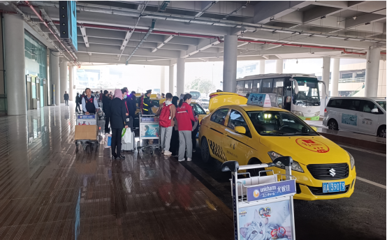圖一在機(jī)場接到孩子們 姜正芳看到通知后立即報名參加義務(wù)接送活動,并把車內(nèi)車外打掃得干干凈凈,提前到達(dá)機(jī)場候機(jī)室,等待來自寧夏特殊教育學(xué)校的孩子們。接到孩子們后,立即把他們送到大學(xué)城師范大學(xué)附近酒店。 重慶機(jī)場交通執(zhí)法大隊給予了這次活動大力支持,專程為隊員們開設(shè)了一條綠色通道。