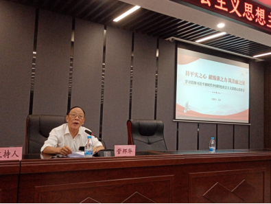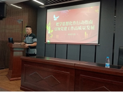 圖為出協(xié)黨委管邦華書記在會上作主題教育學習工作報告。 |