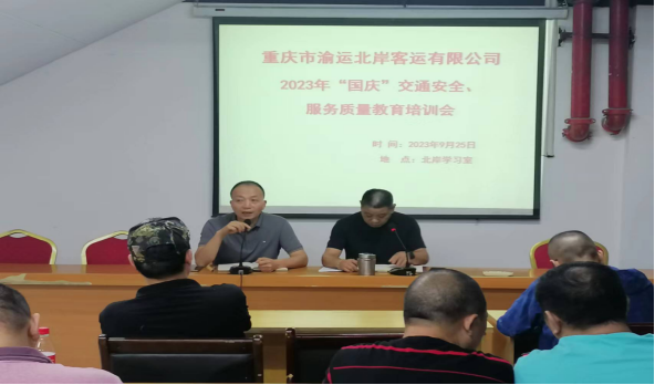 發(fā)表時(shí)間:2023-09-28 11:31作者:覃瑜來(lái)源:渝運(yùn)北岸 為切實(shí)做好“十、一”黃金周期間道路交通安全暨駕駛員文明服務(wù)規(guī)范工作,加強(qiáng)突出事件的預(yù)防與控制,保障群眾平安出行,確保節(jié)日期間的安全和社會(huì)穩(wěn)定2023年9月25日至27日重慶市渝運(yùn)北岸客運(yùn)有限公司組織召開了2023年“十、一”黃金周安全運(yùn)輸、服務(wù)質(zhì)量工作主題教育培訓(xùn)會(huì)。