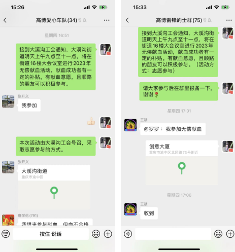 圖為隊員們在微信群里積極響應(yīng)無償獻血活動號召 像張師傅一樣默默趕來奉獻愛心的雷鋒的士隊員還有王斌同志,只是在采血時醫(yī)務(wù)人員發(fā)現(xiàn),王斌的血液有輕微漂浮感,問詢得知是女性生理期后不足五天的原因。擔心在此期間進行獻血可能對王師傅身體造成損傷,工作人員對王斌的愛心舉動深表感謝的同時,建議王師傅下次有機會再來獻血。沒有成功獻血的王師傅還小小的遺憾了一把,不過她同時表示,也是通過本次獻血行動了解了更多獻血小知識,也幫助她為下次成功獻血做好充分準備。 我相信,像張師傅和王師傅一樣滿懷愛心默默奉獻的駕駛員朋友還有很多很多。他們以實際行動時刻踐行著雷鋒精神,在平凡的崗位上譜寫著不平凡的人生華章。讓我們向他們學(xué)習(xí),為他們點贊!本次獻血活動,由于前幾天吃了感冒藥、血液太粘稠等問題,特別是停車難,有部分駕駛員沒能成功參與其中,雖有小小遺憾,但也不妨礙我們?yōu)樗麄兊娜瞰I之心致以崇高的敬意。 無償獻血,奉獻愛心,這個冬天,因你們而更加溫暖!也愿更多朋友加入其中,為有需要的人們撐起生命的保護傘!